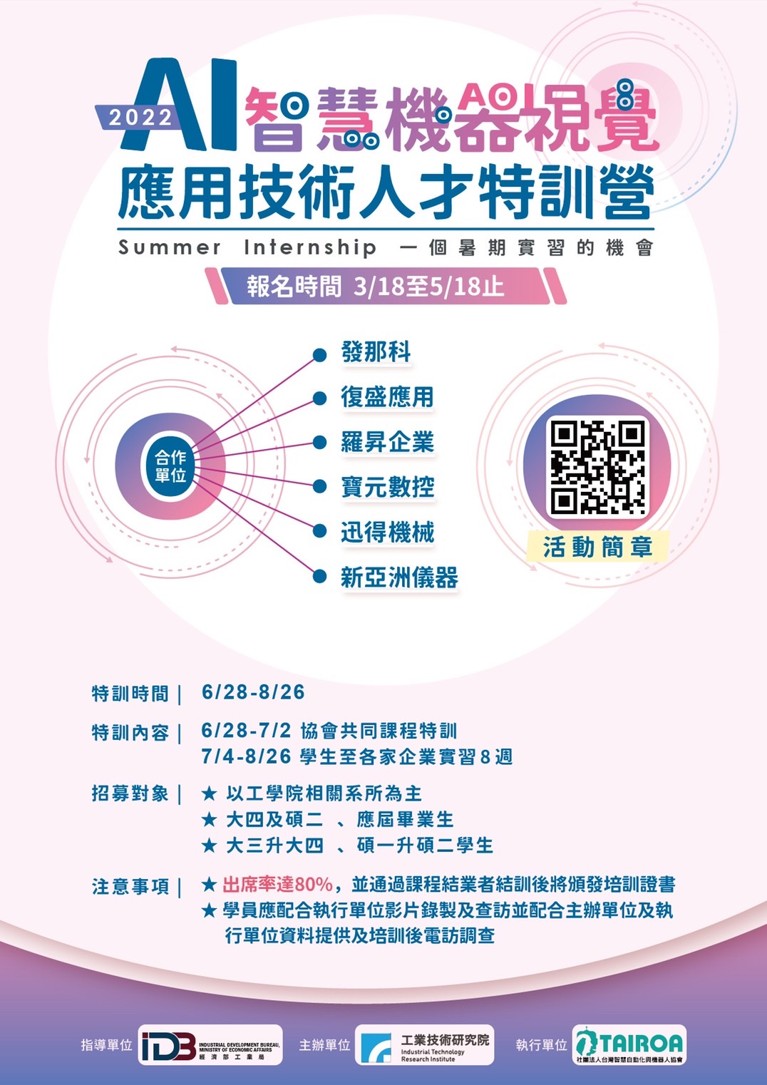 智動協會於2022/6/28-8/26辦理「2022 AI智慧機器視覺應用技術人才特訓營」