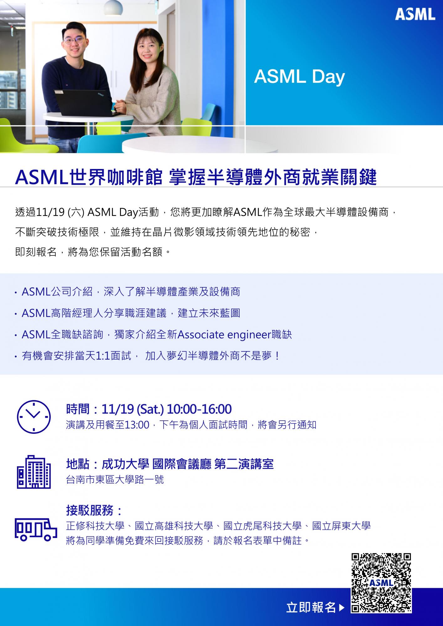ASML Day [本系] 2022-11-01 AdminAdmin 同學報名連結: (DM) https://docs.google.com/forms/d/1jO8iEJdoCK7UcXOYOXF7FmOnknw57JYjLSxl5R31Mfo/viewform?edit_requested=true 2022 ASML Day_EDM